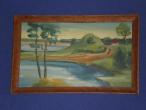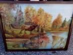 Daiktas Senas peizažas, tapytas aliejumi ant drobės Elnias miške prie upelio.