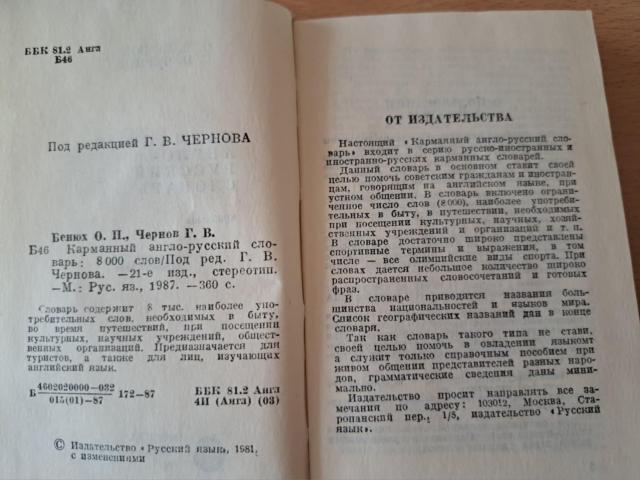 1987m. kišeninis Anglų-rusų žodynas 8000 žodžių, 359 psl.