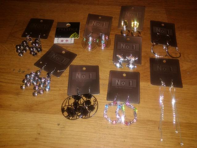 auskarai yra +30 modeliu visi bizuteriniai ne brangiuju metalu,dydis vidutiniai arba dideli, kaina 1 eur.jei perkat bent 5vnt, jei ka domina rasykit:)