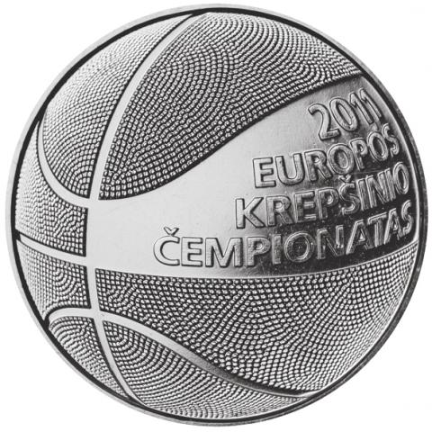 Aversas: Monetos averse – stilizuotas krepšinio kamuolys ir Lietuvos Respublikos herbo simbolis Vytis, užrašas LIETUVA, 2011, 1 LITAS. Averse taip pat įspaustas UAB „Lietuvos monetų kalykla“ ženklas. Reversas: Monetos reverse – stilizuotas krepšinio kamuolys ir užrašas EUROPOS KREPŠINIO ČEMPIONATAS 2011.