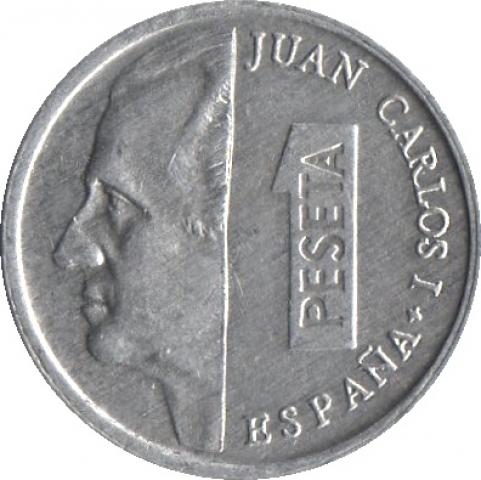 Moneta 1 peseta, Ispanija, 1996, 1997 m. (nuotrauka iš interneto).