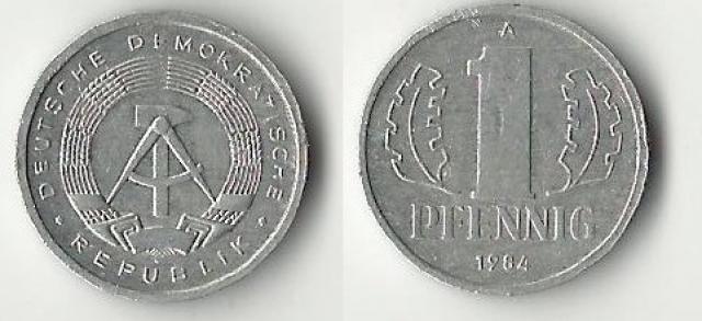 1 Pfenigas (pfennig), VDR (Vokietijos Demokratine Respublika), 1984