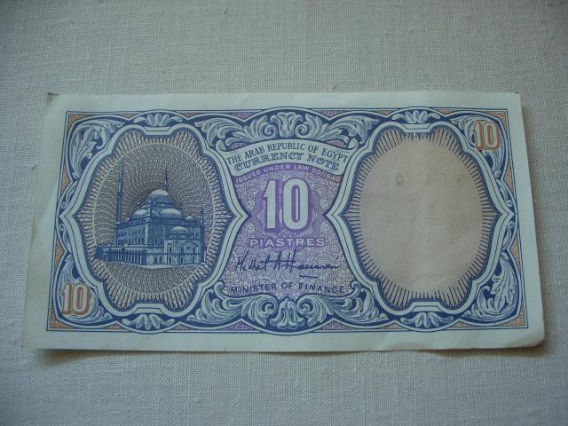 jau nebecirkuliuojanti 10 Egipto piastru nominalo kupiura. Todel, galima sakyti, vertybe/retenybe...