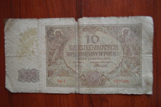 10 lenkijos zlotų kupiūra. 1940m.