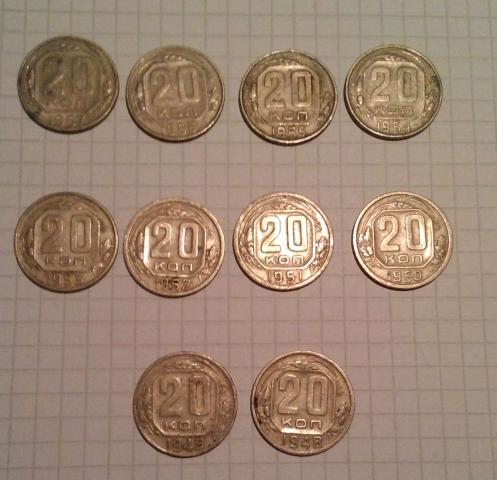 10 Monetų rinkinukas 1957m.-1948m. Kapeikų.