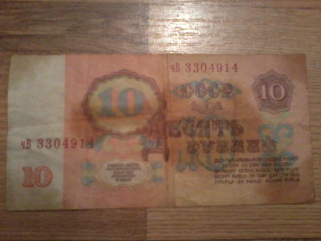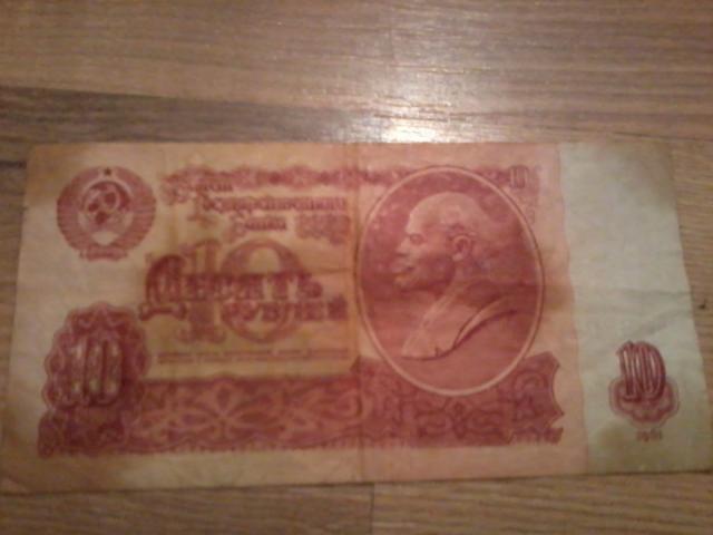 10 rublių banknotas, šiek tiek dėmėtas. 1961 metų leidimo.