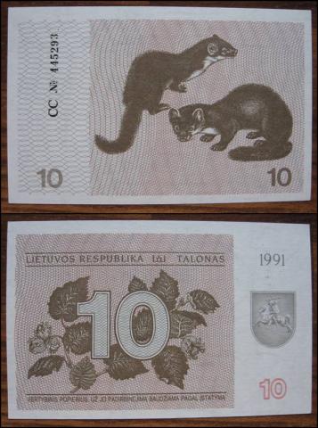10 talonų kiaunės 1991 m . su užrašu UNC