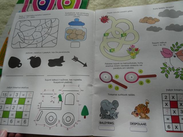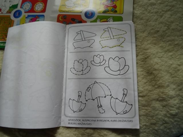 Dvi užduočių knygelės. Kai kurios užduotėlės bandytos daryti, bet dar pakankamai neatliktų. Papildomai pridėsiu spalvinimo knygelę. Galiu padovanoti prie mainų.