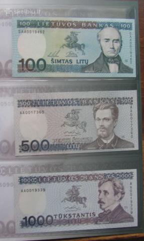 1000,500 litų 1991 m. 100 litų - 1994m. Lietuva
