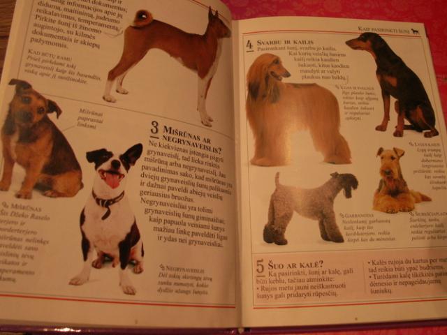 Knygoje daug informacijos kaip pasirinkti šunį, kokį maistą pirkti, kaip dresuoti, apie šunis. Yra iliustracijų. Deja, knyga truputį apipaišyta, bet tai tikrai netrugdo skaityti (tik pirmasis puslapis).