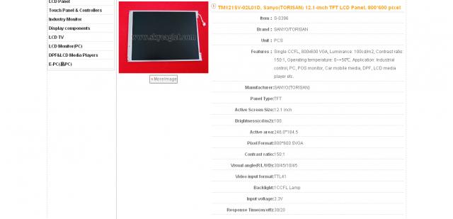Sanyo 12.1" SVGA LCD Matrica (tm121sv), TFT 800X600, 3x20 pin Daugiau cia: http://www.skyeaglet.com/index.php?gOo=goods_details.dwt&goodsid=410