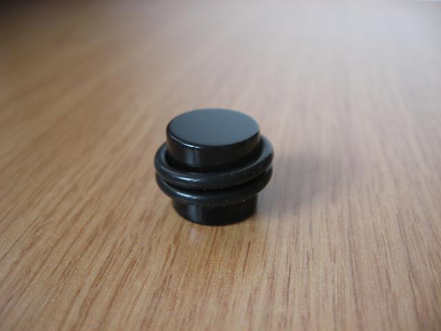 12 mm juodas akrilo"kamštis" su dviem gumytėm. Buvo nešiotas kokias 20 minučių.