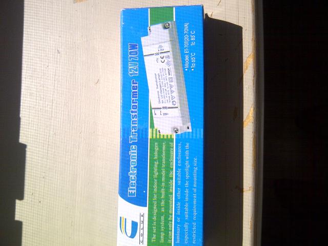220 V AC transformuoja i 12 V AC. Tinka halogeninems lempoms maitinti is rozetes.