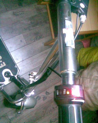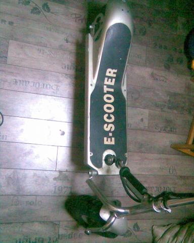 Veikiantis elektrinis paspirtukas, jame yra imontuoti du 12V akumuliatoriai.