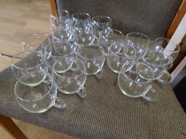 18 vnt. stiklinių puodelių- bokaliukų.