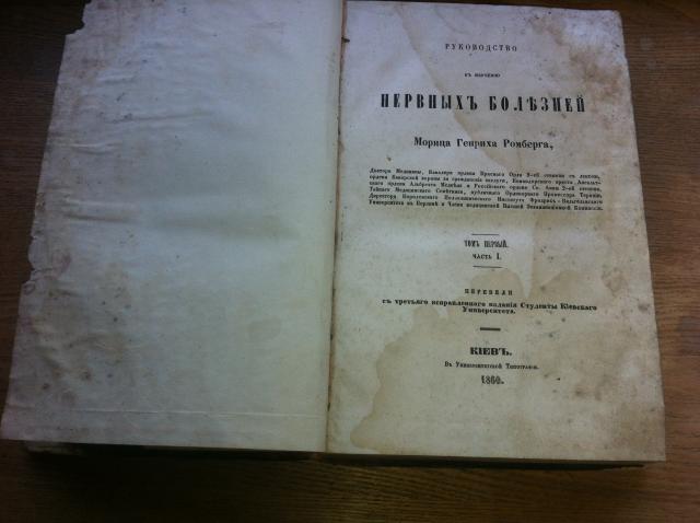 1860 m. knyga rusų kalba "Руководство к изучению нервных болезнеи"