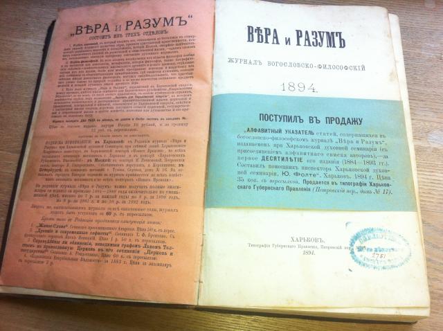 1894 m. žurnalas rusų kalba " Вера и разум"