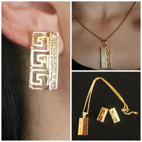 18k. auksu paauksuotas, kalnų krištolo akutėmis papuoštas rinkinukas. Rinkinuko sudėtyje: kaklo papuošalas ir auskariukai. Labai gražiai atrodo ant kūno. Esant poreikiui galima pirkti ar mainyti atskiras rinkinio dalis