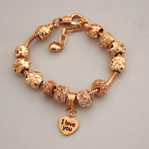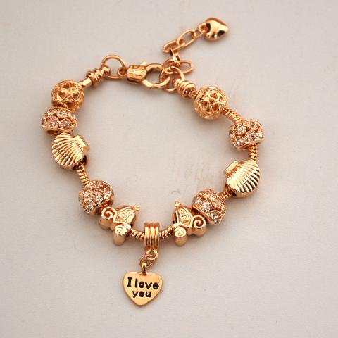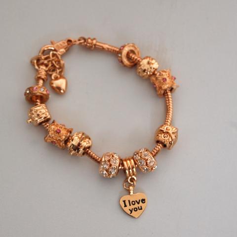 Madinga,paauksuota Trollbeads stiliaus apyrankė su kristalais.16-18 cm riešui.