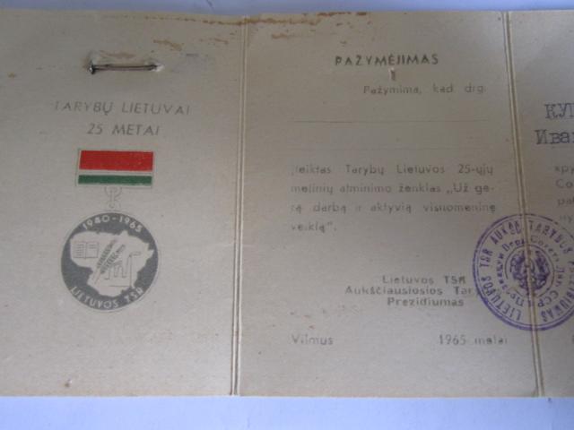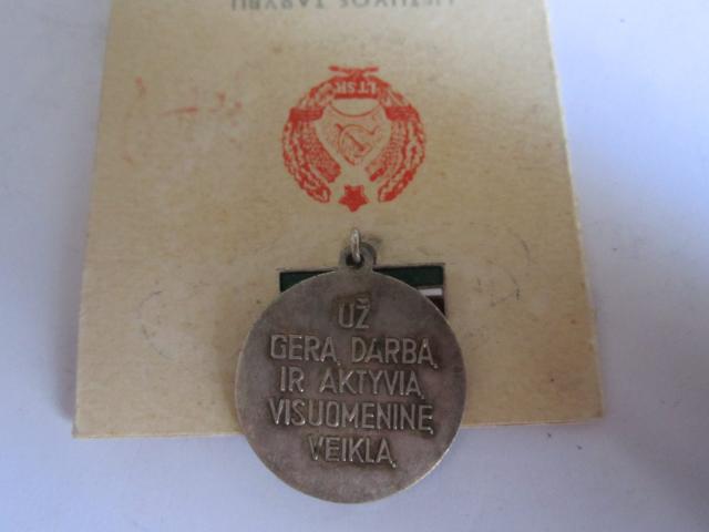 1940-1965 Lietuvos TSR apdovanojimas apdovanojimas sidabrinis, Su orginaliu dokumentu Kaina 5€