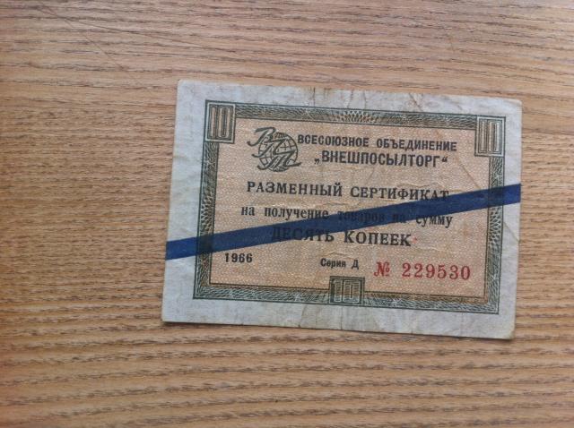 1966 metų Vniešposyltorgo sertifikatas