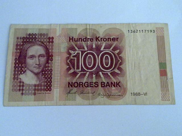 1988 metų Norvegijos 1OO kronų. Banknotas iš apyvartos.