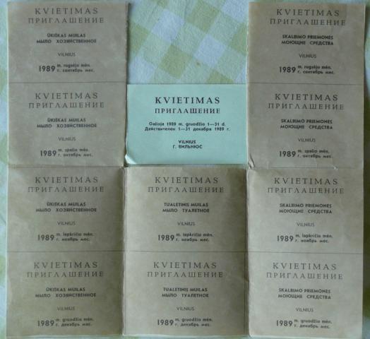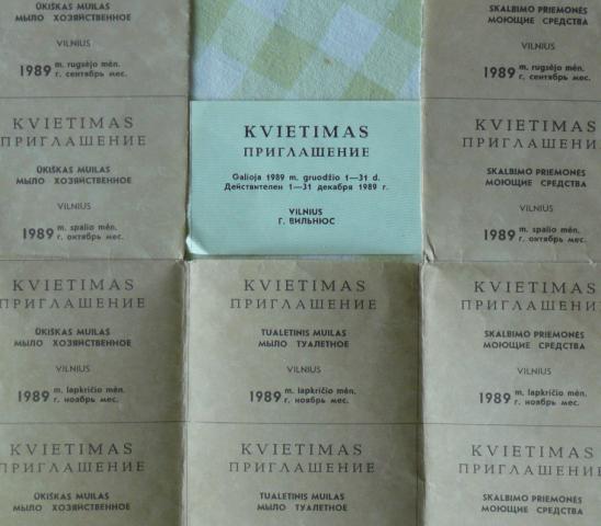 1989 m. talonai įsigyti ūkišką, tuletinį muilus ir skalbimo priemones. viduryje maistui