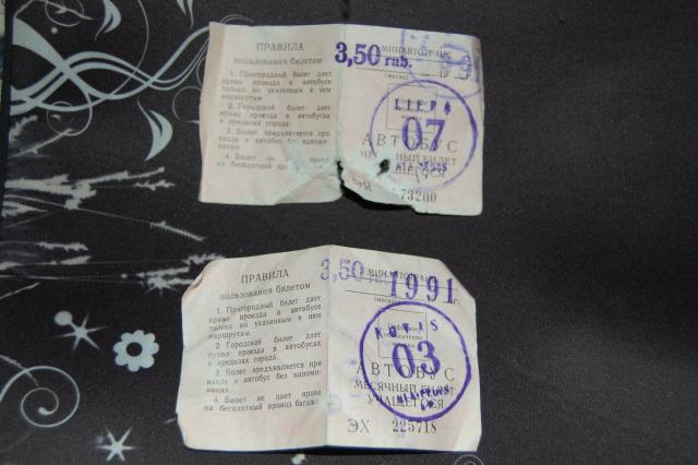 Besimokančiojo 1991m. Kovo ir Liepos menesių viešojo transporto bilietukai :)