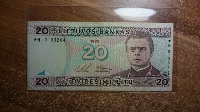1993 20LT replacement *N RETAS banknotas 90€. 1993 10LT replacement *K RETAS banknotas 55€.