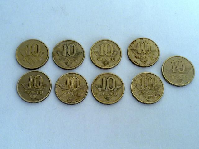 1997 metų 1O centų. Monetos iš apyvartos, vidutinės būklės. 9 vienetai.