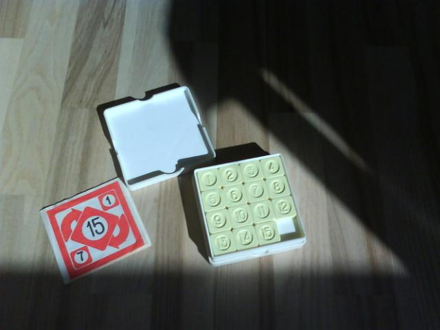 Žaidimai "15" ir dar su figūrėlėm, kur reikia sudėt į įvairias didesnes figūras, su instrukcijom.