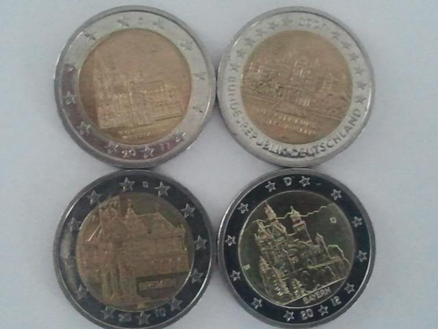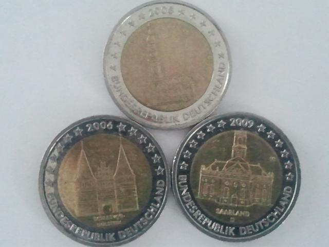 Vokietijos 2006m(Schleswig Holstein) 5vnt; 2007m(Meclenburg Vorpommern) 1vnt; 2008m(Hamburg) 1vnt; 2009m(Saarland) 8vnt; 2010m(Bremen) 5vnt; 2011m(Nordreihn Westfalen) 6vnt; 2012m (Bayern) 1vnt; Bendrai isleistu EU 2 monetos-2007m Vokietijos 5vnt, Austrijos 3vnt, 2009m Vokietijos 4vnt, Prancuzijos 2vnt, 2012m Vokietijos 4vnt. Kaina 2007, 2008 ir 2012 Vokietijos po 25lt, visu kitu po 16lt. Mainais-domina kiti proginiai 2 Eurai, cirkuliuojami eurai