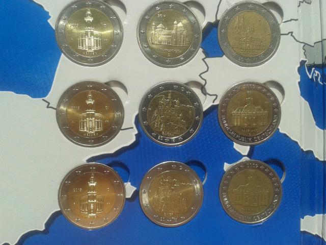 Italija Dante (UNC), 2015, kaina 3,8 Italija Milanas (UNC), 2015, kaina 3,8 Prancūzija, (UNC) 2015, kaina 3,8 Portugalija, Timor (UNC) 2015, kaina 3,8 Liuksemburgas (UNC), 2015, kaina 3,6 Portugalija (UNC), 2015, kaina 3,6 Latvija, ES pirmininkavimui (UNC), 2015, kaina 3 Vokietija, Hessen (A) (UNC), 2015, kaina 3 Ispanija, Altamira (UNC), 2015, kaina 3,5 Vokietija, 25 metai (J) (UNC), 2015, kaina, 3 Liuksemburgas, (UNC), 2014, kaina 4,2 Vokietija, Niedersaksen A (UNC), 2014, kaina 3,5. Austrija,