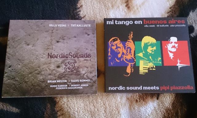 2 Jazz muzikos diskai, pirkti prieš kelis metus Jazz'o festivalyje. Pirmasis diskas: "Nordic Sounds" (pilkos spalvos). Antrasis diskas: "Nordic Sounds meets Pipi Piazzolla" (juodos sp.).