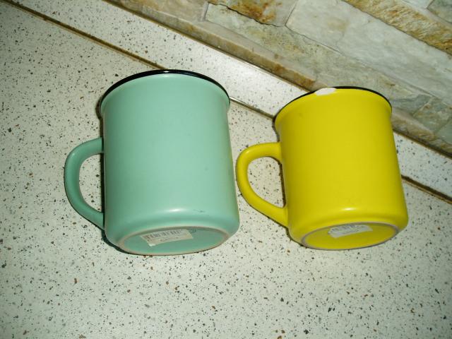 dideli,talpa maždaug 0,3 ltr.Už abu 3€. Vienas su defektuku,matosi tik puodelį apvertus (matyti paskutinėje foto)