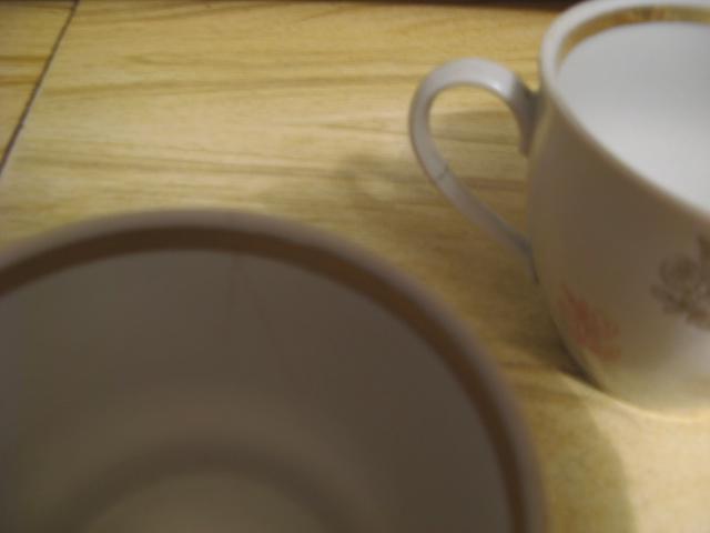 abu puodeliai turi po defektą, kuris matosi įsižiūrėjus antroje foto: žemesniojo šonas įskeltas, matosi tiek iš vidinės, tiek išorinės pusės, antrojo aselė įskelta, matosi rusva linija. keičiu į visišką smulkmeną