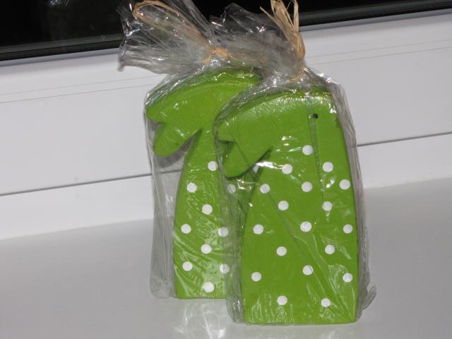 2 naujos, tik užsigulėję spintoje žvakutės - zuikučiai, (13 cm aukščio) ryškiai žalios spalvos.