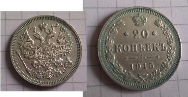 20 kapeikų 1915 m. Sibadrinė moneta.