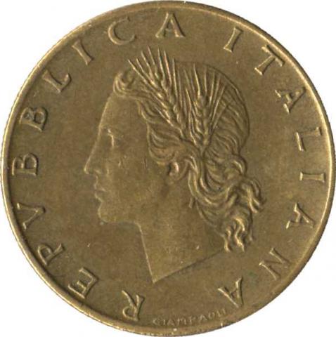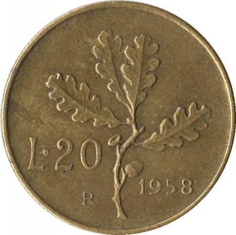 Moneta 20 lire, Italija, 1958 m. (nuotrauka iš interneto).