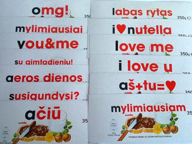 2016 metų Nutella etiketės. Valentino dienos ir kitos progos. 0,30 ct / vnt.
