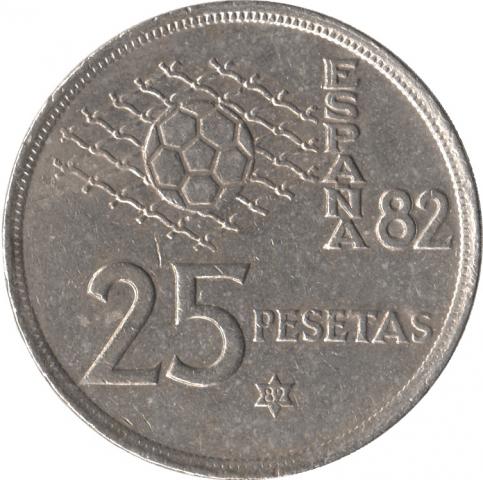 Moneta 25 pesetos, Ispanija, 1982 m. (nuotrauka iš interneto).