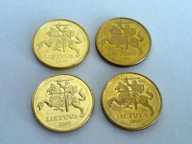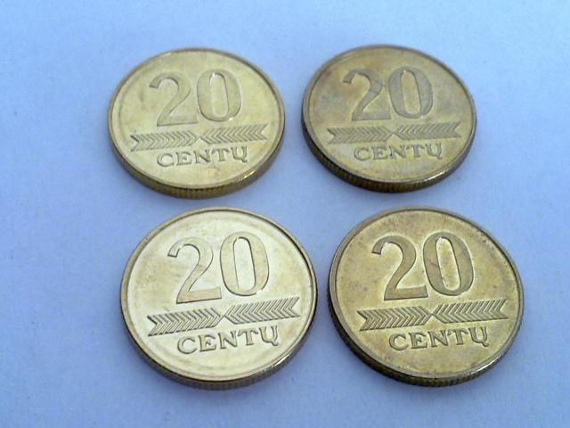 2OO9 metų 2O centų monetos. 4 vienetai. Monetos iš apyvartos, bet geros būklės.