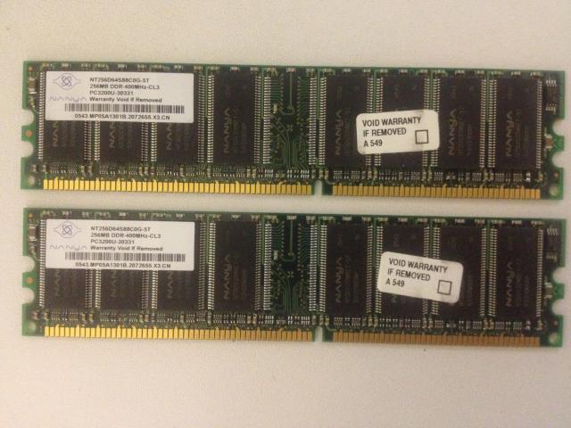 2x ddr 400mhz ram 256mb cl-3 pc3200