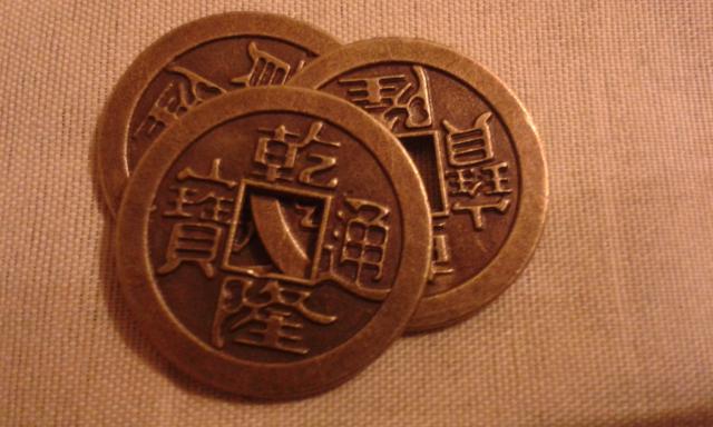 3 Fengshui monetos, peristos raudonu siulu atnesa turta i namus.
