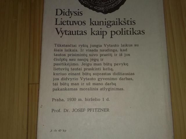 J.Pficneris "Didysis Lietuvos kunigaikštis Vytautas kaip politikas"- 1989 m.,320 psl. 2 eur; A.Šapoka, Z.Ivinskis ir kiti "Vytautas didysis"- 1988 m, 296 psl. 2 eur; A.Nekrošienė "Iš kur atėjome" - 1988, 69 psl, 2 eur.