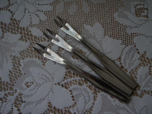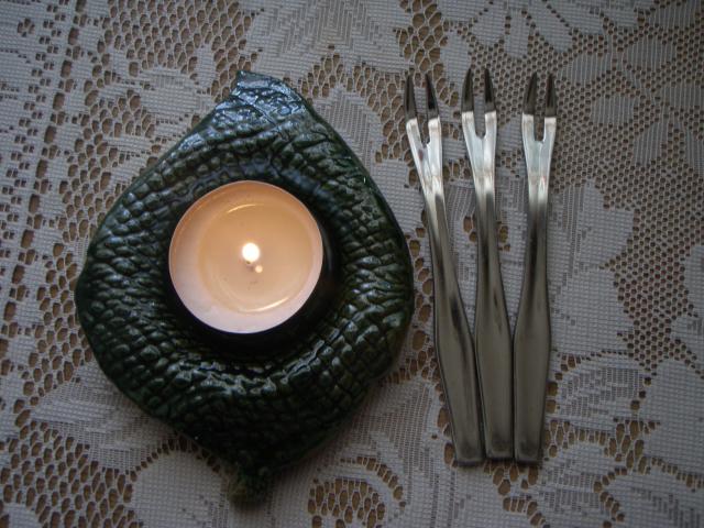 Mažai čiupinėta bei naudota. Tinka fondiu, smulkesniui vaisiui ar uogoms paknebinėt :) Dydis? - Maždaug apima vidurinį pirštą :) P.S.: neparduodu žvakidėlės, tiesiog pateikiu pavyzdį, kaip atrodo.