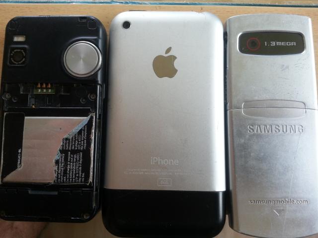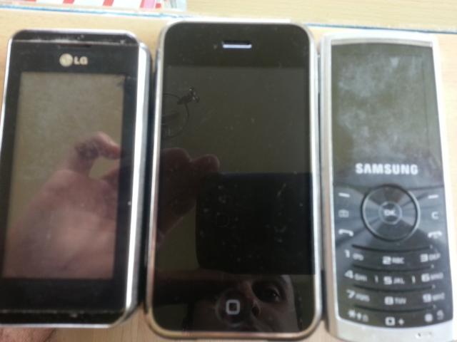 Iphone, LG ir Samsung telefonai, atitarnave savo bet veikiantys, iphone originalas, veikia gerai. LG smarkiai apibraizytas ir neturi galinio dangtelio, samsungas irgi apibraizytas bet veikia tikrai gerai