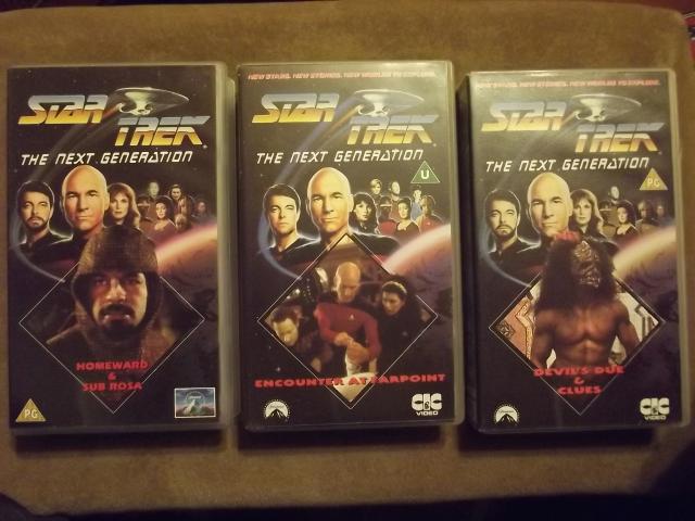 startrek-the next generation: homeward, sub rosa, encounter at farpoint, devil's due, clues. 3vhs.