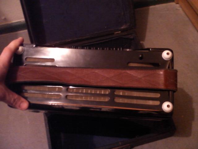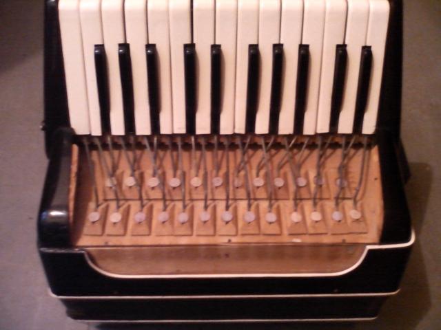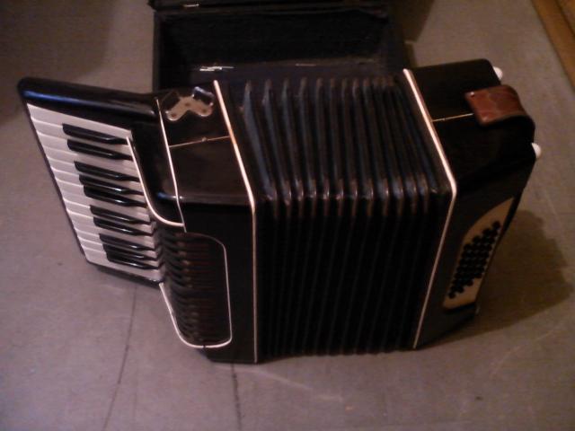 32 bosų rusiškas akordeonas. Nėra apdaužytas ar labai apibrozdintas. Matosi smulkių defektų. Daugumą galima greitai pašalinti. Nėra diržų, bet yra dėklas.
