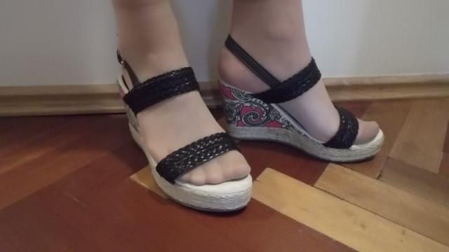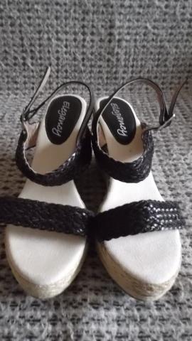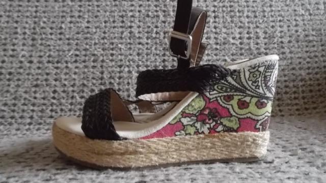 Spalvingos 36/37 dydžio basutės. Platformytės aukštis 9 cm, vidpadis nuo krašto iki krašto 23 cm